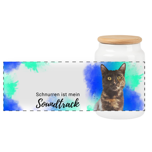 LiNBW. Leckerlidose aus Keramik mit Holzdeckel Schnurren ist mein Soundtrack