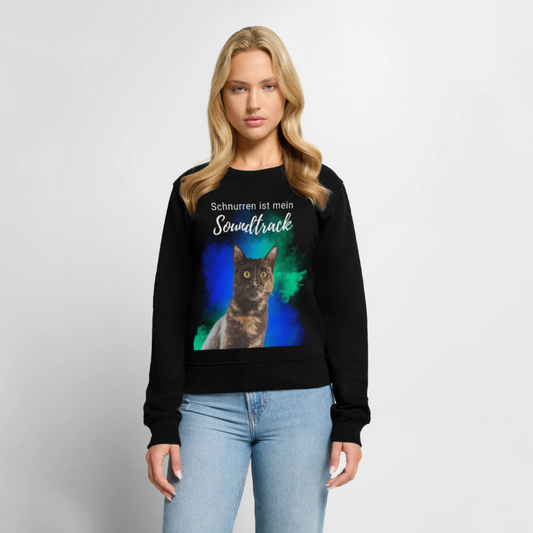 Damen Pullover „Schnurren ist mein Soundtrack“ – Nala mit Farbsplash – schwarzer Print 😻🎶